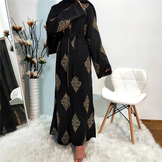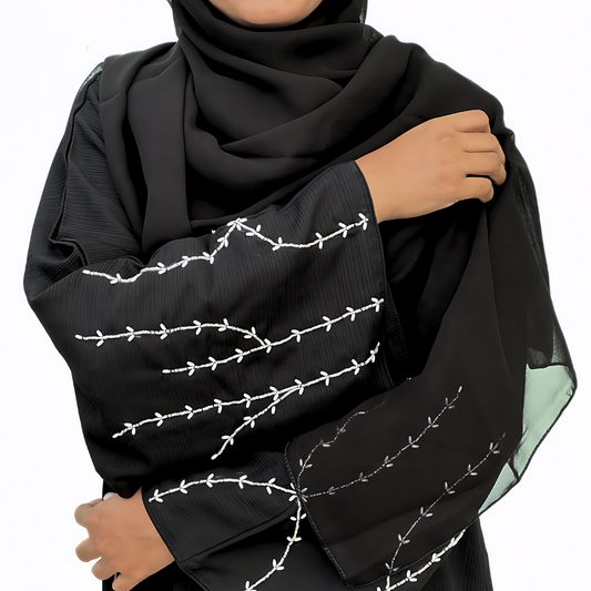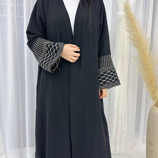 Flower Embroidery Long Sleeve, Open Front Abaya